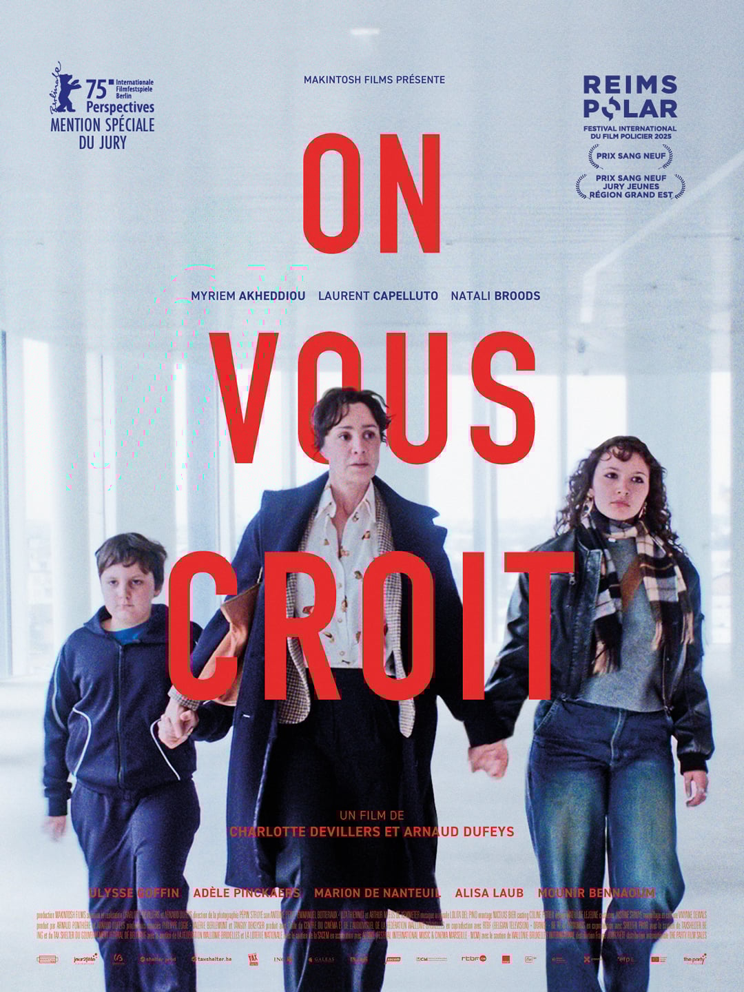 Les nouveaux venus Charlotte Devillers et Arnaud Dufeys signent un drame judiciaire aussi percutant qu’éprouvant, qui explore des thèmes sensibles (violences sur mineurs, poids de la parole victimaire, présomption d’innocence) avec un réalisme et une justesse rares. L'action d'ON VOUS CROIT se déroule principalement dans les couloirs glacés du tribunal et dans le bureau dépouillé de la juge en proie au doute. Il en résulte un huis clos anxiogène, dont la tension constante est nourrie par l’ambiguïté des gestes, des mots et des silences. Suspendu entre les versions du père et de la mère, le spectateur en ressort profondément troublé. En mère au bout du rouleau, Myriem Akheddiou (UNE PART D’OMBRE, LE JEUNE AHMED) livre une interprétation nuancée, d’une vérité désarmante. (Texte rédigé en novembre 2025, dans le cadre du festival CINEMANIA de Montréal)